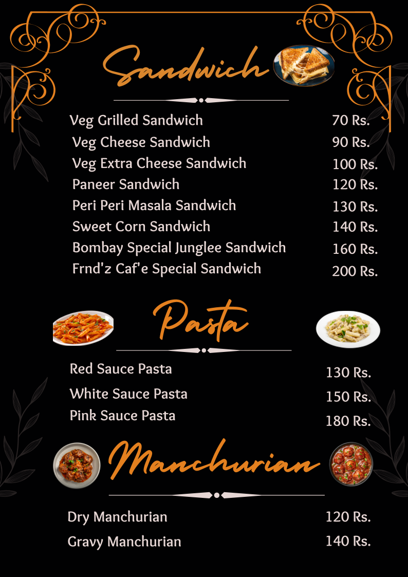 Welcome to FRND'Z CAF'E, a hidden gem located in the heart of Pratap Nagar, Jaipur. This delightful cafe combines a warm atmosphere with an enticing menu crafted for food lovers. The pasta options, including the rich Red Sauce Pasta and creamy White Sauce Pasta, are favorites, delighting patrons with their exquisite flavors at reasonable prices.